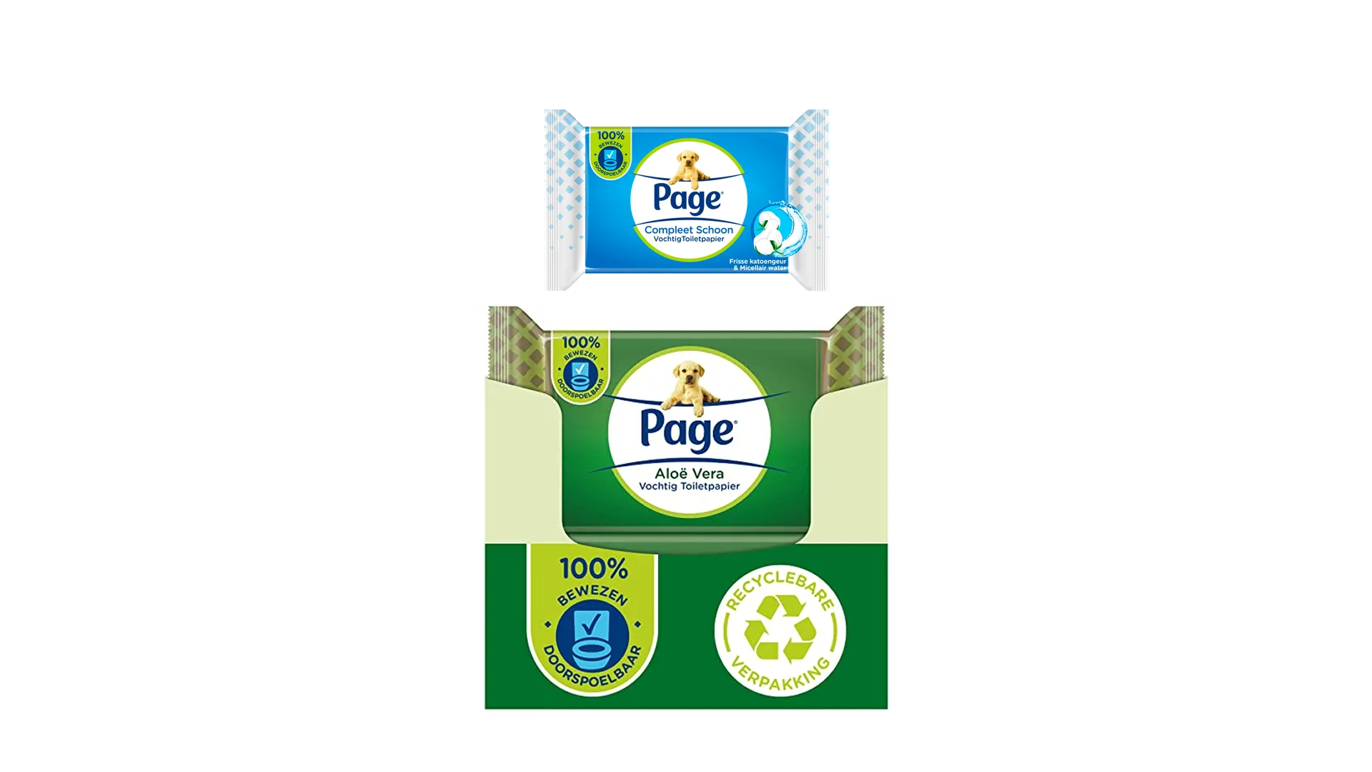 Door Page vochtig toiletpapier te vergelijken met andere merken zie je: